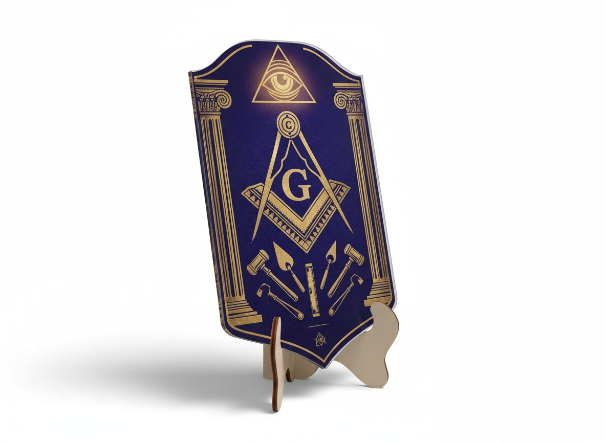 A premium Freemason-themed acrylic football card sign featuring traditional Masonic symbols and craftsmanship. This personalized item is designed specifically for Brothers of the Craft.
