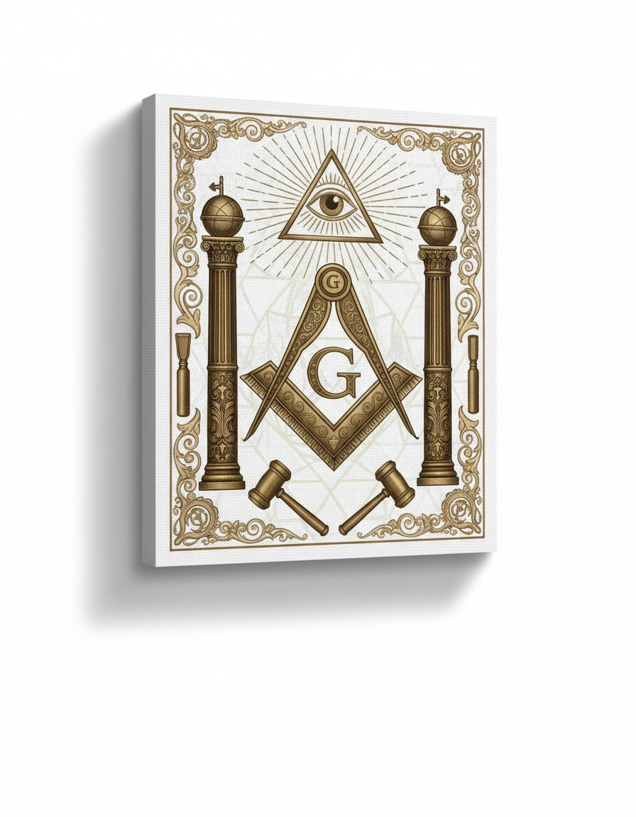 A premium Freemason-themed canvas prints (museum wrap) featuring traditional Masonic symbols and craftsmanship. This personalized item is designed specifically for Brothers of the Craft.
