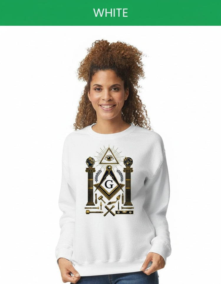 A premium Freemason-themed classic unisex crew-neck sweatshirt gildan 18000 featuring traditional Masonic symbols and craftsmanship. This personalized item is designed specifically for Brothers of the Craft.
