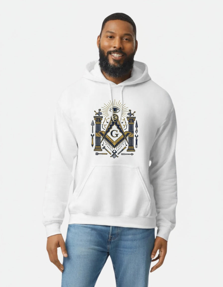 A premium Freemason-themed classic unisex hoodie gildan 18500 featuring traditional Masonic symbols and craftsmanship. This personalized item is designed specifically for Brothers of the Craft.