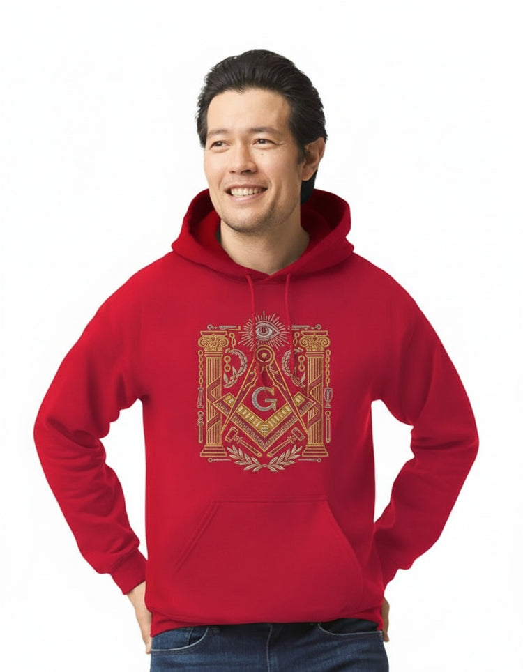 A premium Freemason-themed classic unisex hoodie gildan 18500 featuring traditional Masonic symbols and craftsmanship. This personalized item is designed specifically for Brothers of the Craft.
