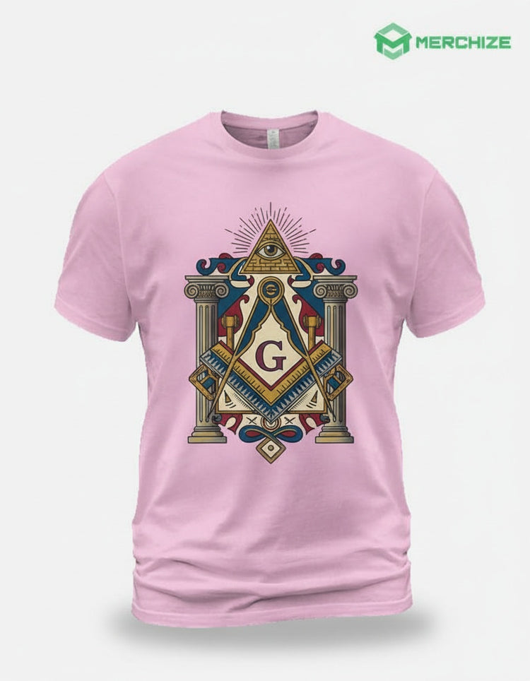 A premium Freemason-themed classic unisex t-shirt featuring traditional Masonic symbols and craftsmanship. This personalized item is designed specifically for Brothers of the Craft.