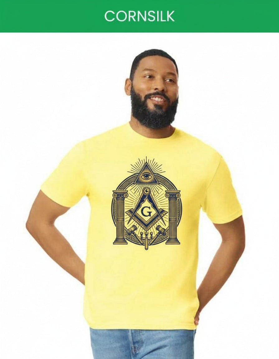 A premium Freemason-themed classic unisex t-shirt gildan 6400 featuring traditional Masonic symbols and craftsmanship. This personalized item is designed specifically for Brothers of the Craft.