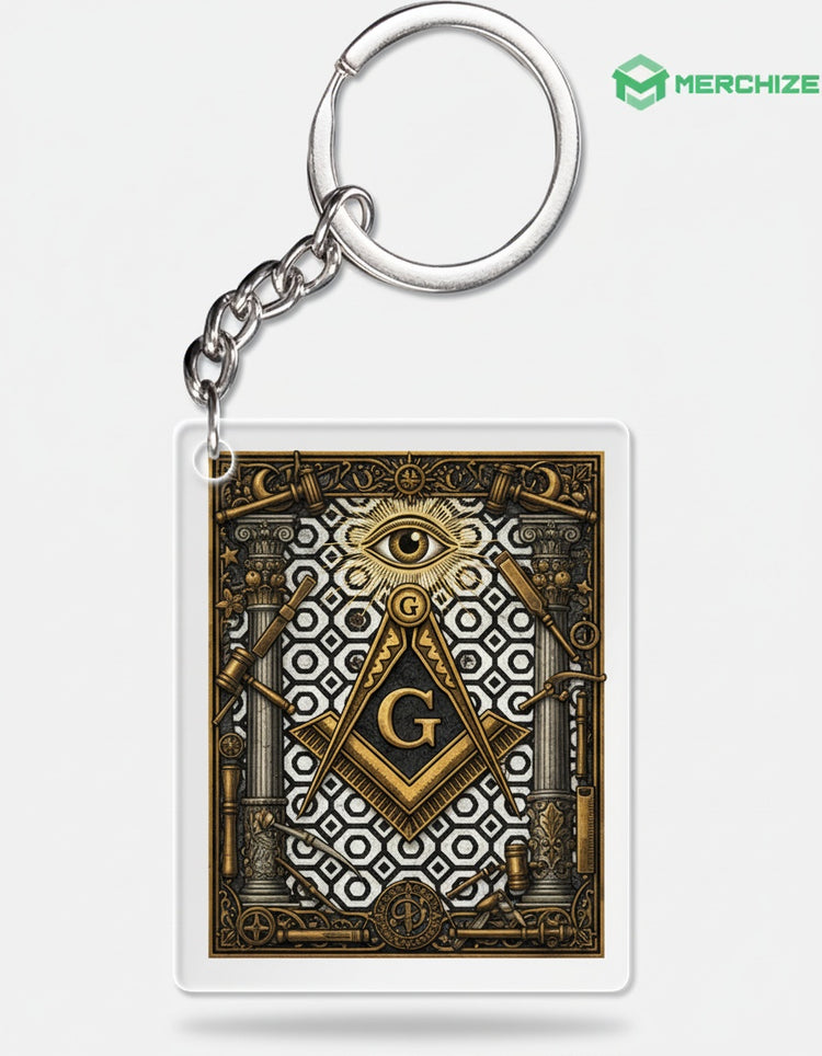A premium Freemason-themed custom shape 1-side printed acrylic keychain featuring traditional Masonic symbols and craftsmanship. This personalized item is designed specifically for Brothers of the Craft.