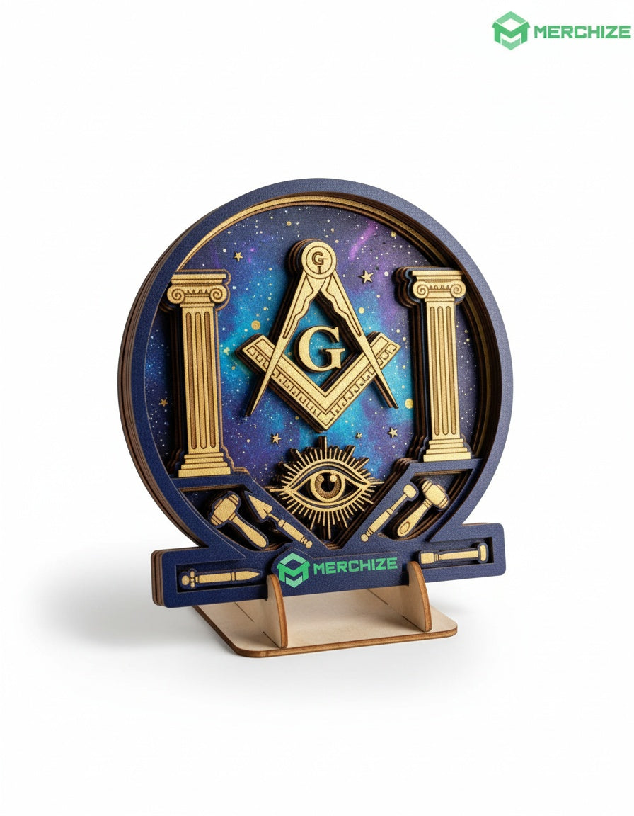 A premium Freemason-themed custom shape 4-layer wood sign featuring traditional Masonic symbols and craftsmanship. This personalized item is designed specifically for Brothers of the Craft.
