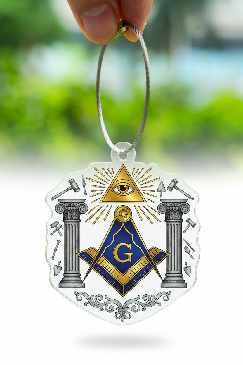A premium Freemason-themed custom shape clear acrylic tag featuring traditional Masonic symbols and craftsmanship. This personalized item is designed specifically for Brothers of the Craft.