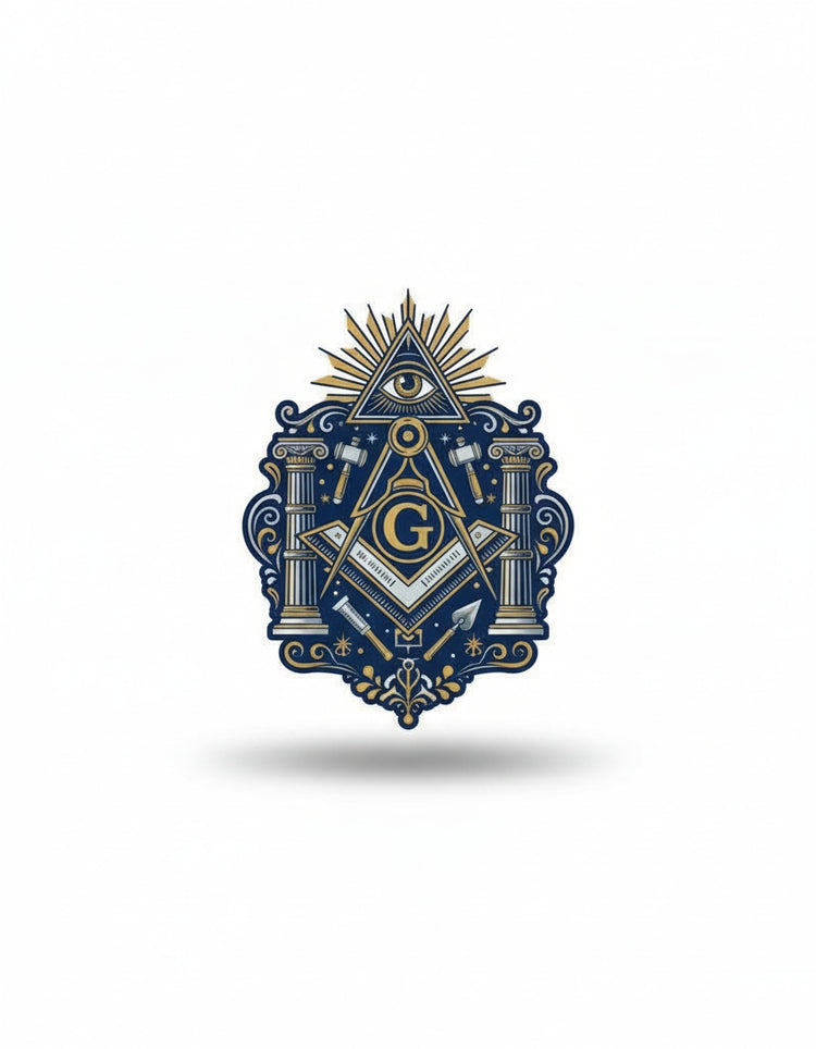 A premium Freemason-themed custom shape decal featuring traditional Masonic symbols and craftsmanship. This personalized item is designed specifically for Brothers of the Craft.