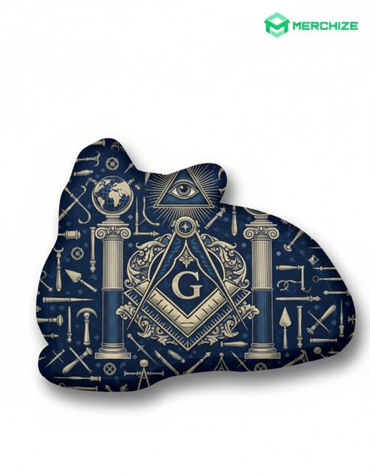 A premium Freemason-themed custom shape plush pillow featuring traditional Masonic symbols and craftsmanship. This personalized item is designed specifically for Brothers of the Craft.