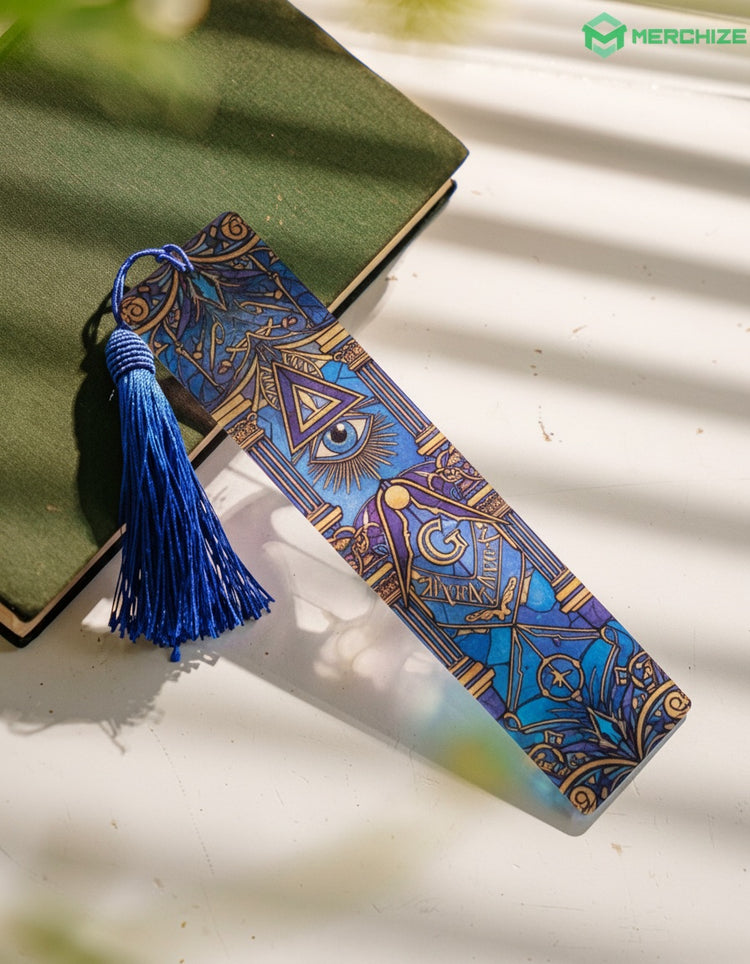 A premium Freemason-themed custom shape suncatcher bookmark featuring traditional Masonic symbols and craftsmanship. This personalized item is designed specifically for Brothers of the Craft.