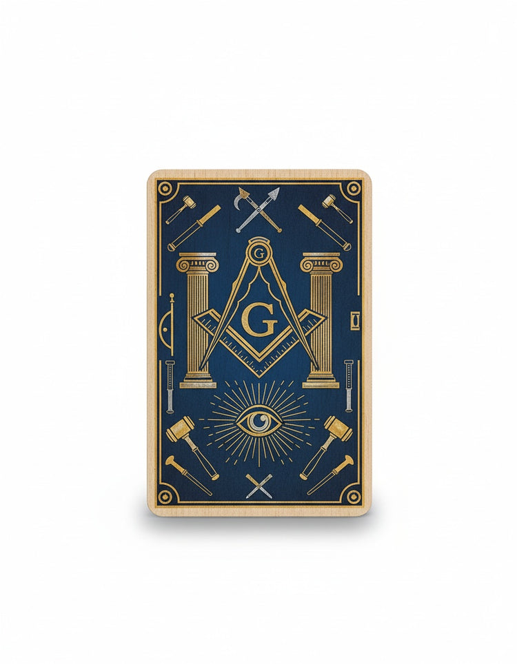 A premium Freemason-themed custom shape wooden car clip featuring traditional Masonic symbols and craftsmanship. This personalized item is designed specifically for Brothers of the Craft.
