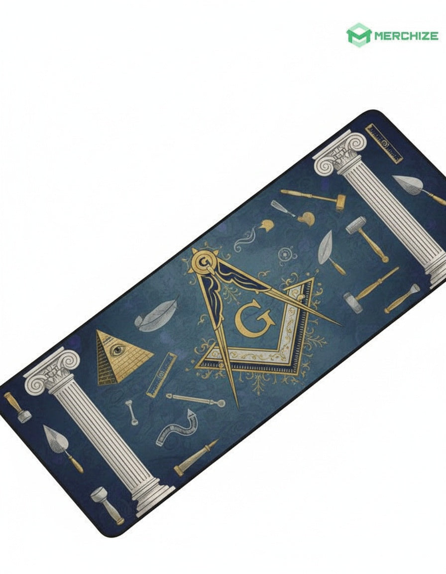 Product Title: "MasonView | Personalized Freemasonry Desk Mat (Made in US)" Product Description: Discover the perfect blend of elegance, craftsmanship, and Freemason symbolism with the MasonView | Personalized Freemasonry Desk Mat. Each piece is exclusively made in the USA, tailored to reflect the profound respect and reverence we hold for the Masonic tradition. Immerse yourself in the rich history and esteemed brotherhood of the Craft every time you sit at your workspace. This unique, custom-made desk mat features the iconic Square and Compass emblem, a timeless symbol of the Freemasons' commitment to virtue, morality, and fraternity. The design is a respectful nod to the Lodge and the universal bond shared by Brothers around the globe. Our desk mats are not mass-produced. Each order is personally attended to, ensuring your mat is a one-of-a-kind rendering. The exquisite details, the precision of the Masonic symbols, and the overall design are indicative of the meticulous care taken in crafting each piece. This exclusivity enhances the ownership experience and ensures your mat is as unique as you. Crafted with premium, durable materials, our desk mats offer superior comfort and protection for your desk. The dimensions ensure a perfect fit for any workspace, accommodating all your essentials with ease. This product is not just a desk mat, but a testament to your allegiance to the Freemason fraternity. A subtle yet powerful reminder of your commitment to the Craft, the MasonView | Personalized Freemasonry Desk Mat is the ideal accessory for your workspace. Personalize this item with your own text or design to create a truly unique piece that reflects your journey in Freemasonry. With this desk mat, you won't just be making a statement about your fraternity; you'll be carrying a piece of Masonic history with you.