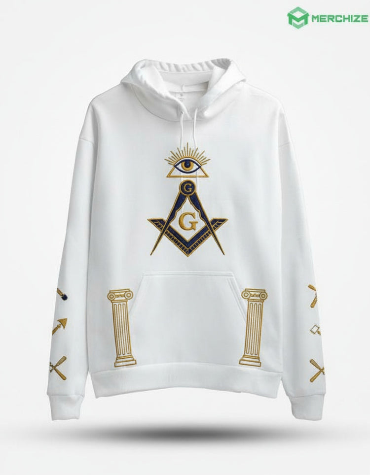 A premium Freemason-themed embroidered lightweight classic unisex hoodie featuring traditional Masonic symbols and craftsmanship. This personalized item is designed specifically for Brothers of the Craft.
