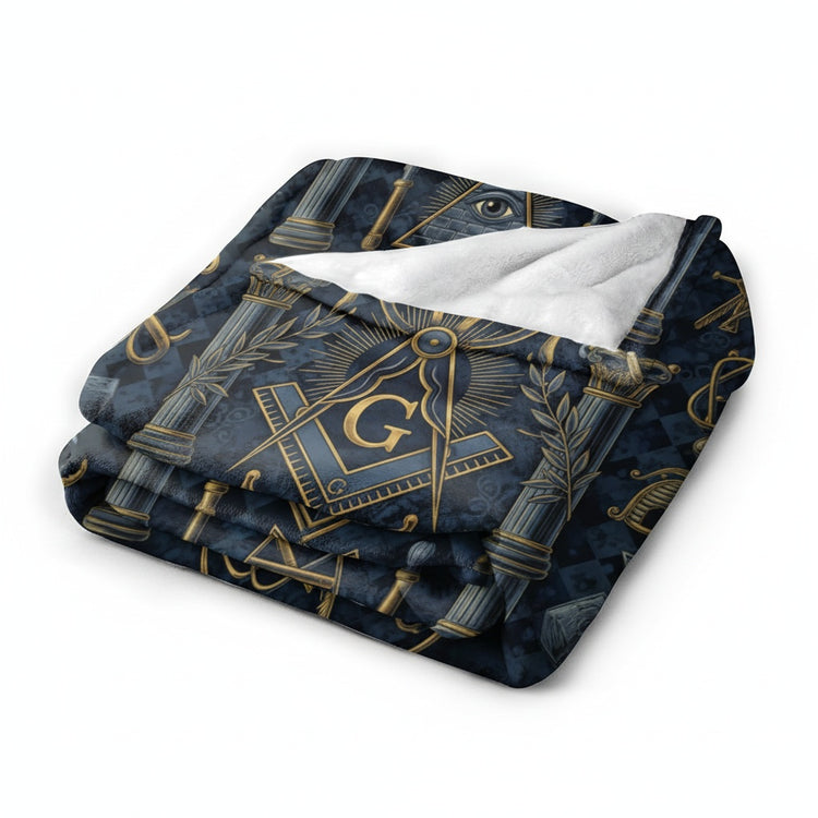 A premium Freemason-themed fleece blanket (lightweight) featuring traditional Masonic symbols and craftsmanship. This personalized item is designed specifically for Brothers of the Craft.