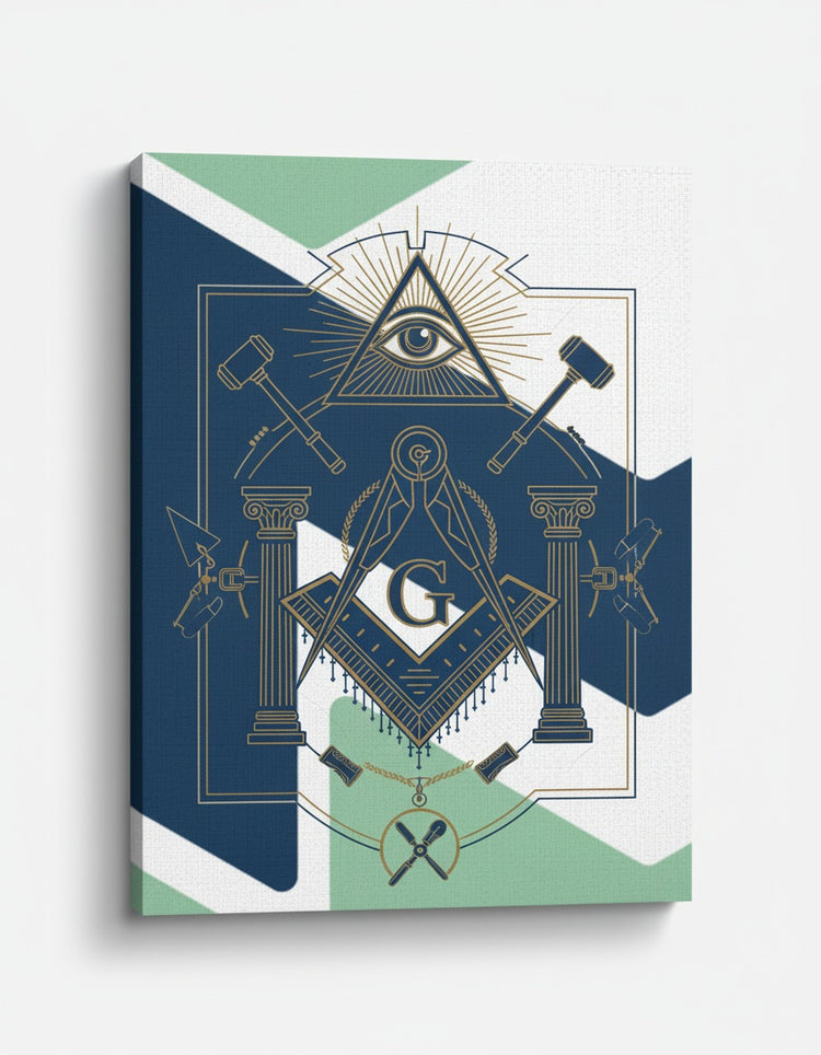 A premium Freemason-themed gallery wrap canvas prints featuring traditional Masonic symbols and craftsmanship. This personalized item is designed specifically for Brothers of the Craft.