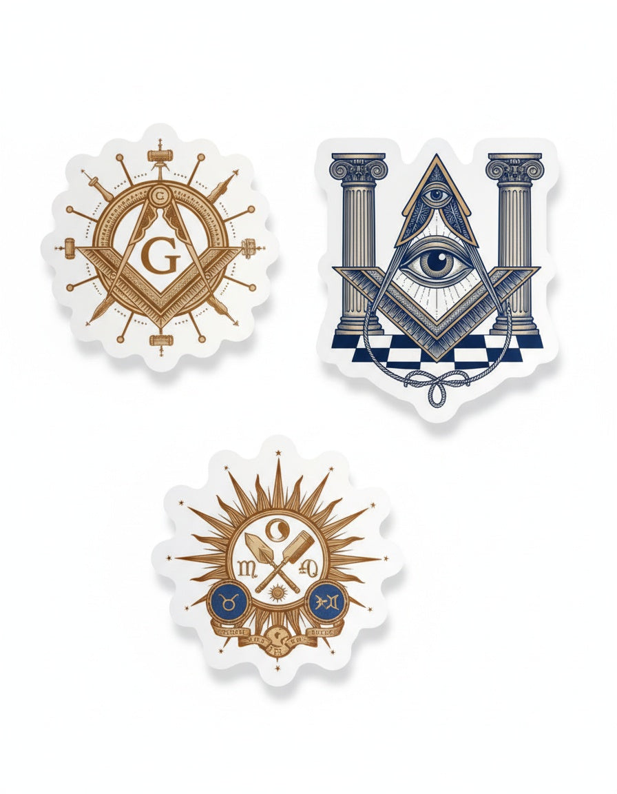 A premium Freemason-themed kiss-cut sticker featuring traditional Masonic symbols and craftsmanship. This personalized item is designed specifically for Brothers of the Craft.
