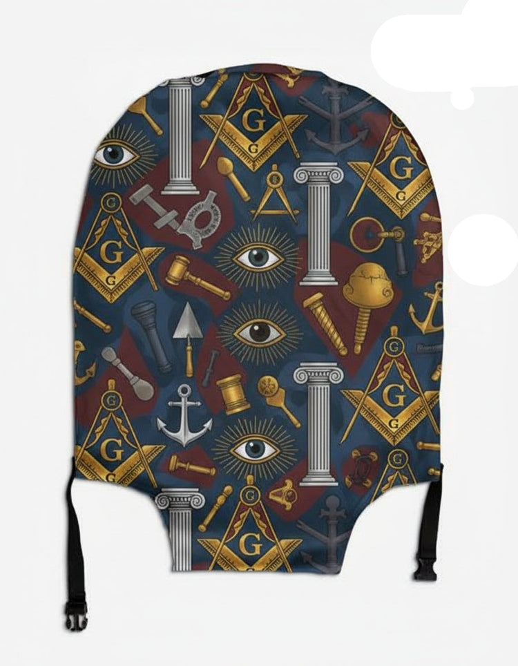 A premium Freemason-themed luggage cover featuring traditional Masonic symbols and craftsmanship. This personalized item is designed specifically for Brothers of the Craft.