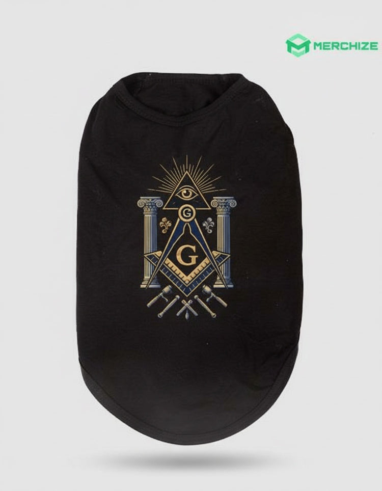 A premium Freemason-themed pet tank top featuring traditional Masonic symbols and craftsmanship. This personalized item is designed specifically for Brothers of the Craft.