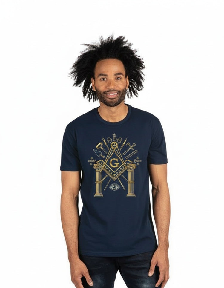 A premium Freemason-themed premium unisex t-shirt next level 3600 featuring traditional Masonic symbols and craftsmanship. This personalized item is designed specifically for Brothers of the Craft.
