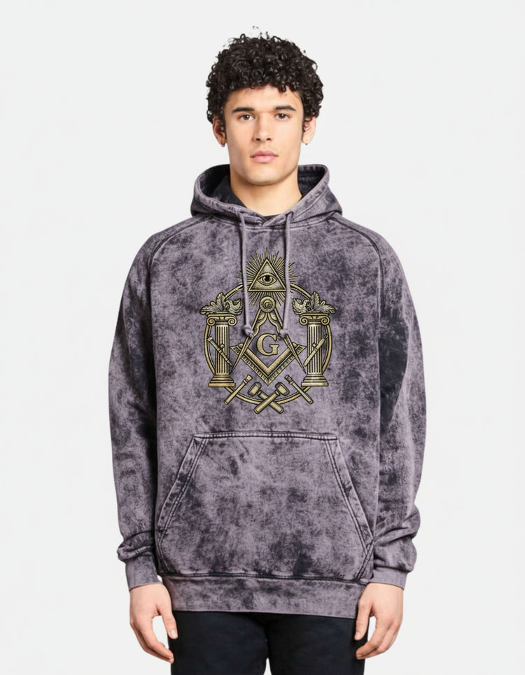 A premium Freemason-themed unisex vintage raglan hooded sweatshirt lst004 featuring traditional Masonic symbols and craftsmanship. This personalized item is designed specifically for Brothers of the Craft.